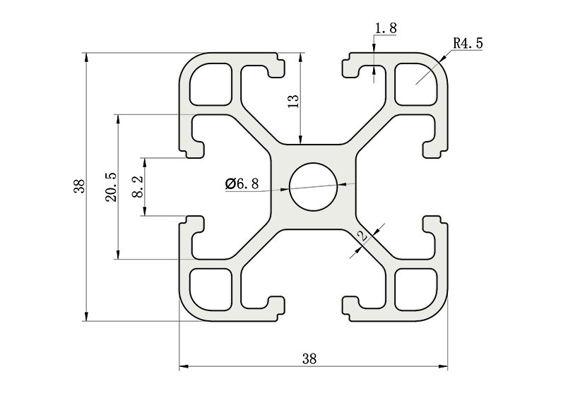 適用于應(yīng)力及強(qiáng)度較大的框架組合結(jié)構(gòu),它的外型采用圓角過(guò)渡,表面經(jīng)過(guò)陽(yáng)極氧化處理,高雅美觀并抗腐蝕,它通常采用M8X20高強(qiáng)度專(zhuān)用螺栓加彈性扣件的內(nèi)部連接方式,堅(jiān)固而又可靠,是工業(yè)框架應(yīng)用較為廣泛的型材之一。